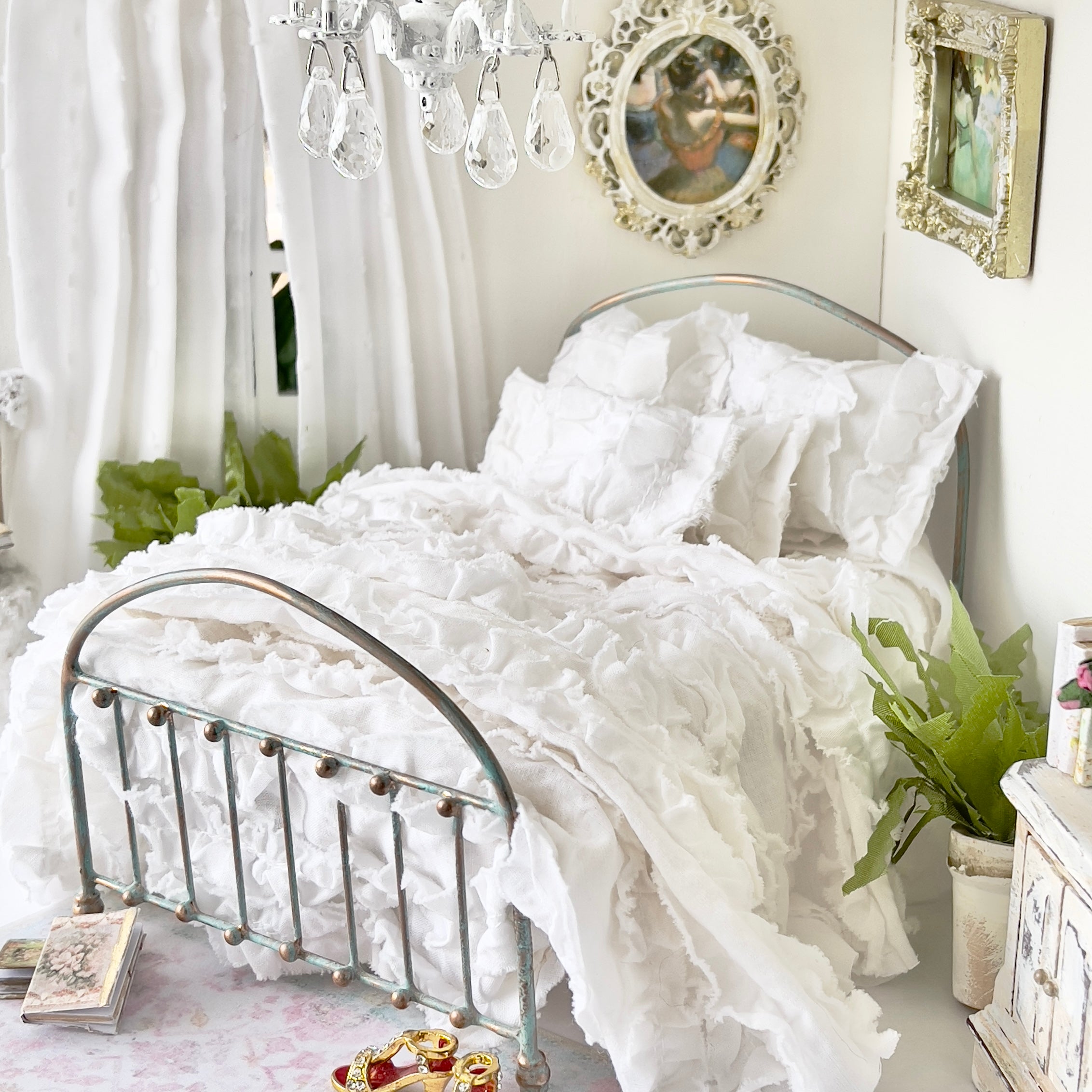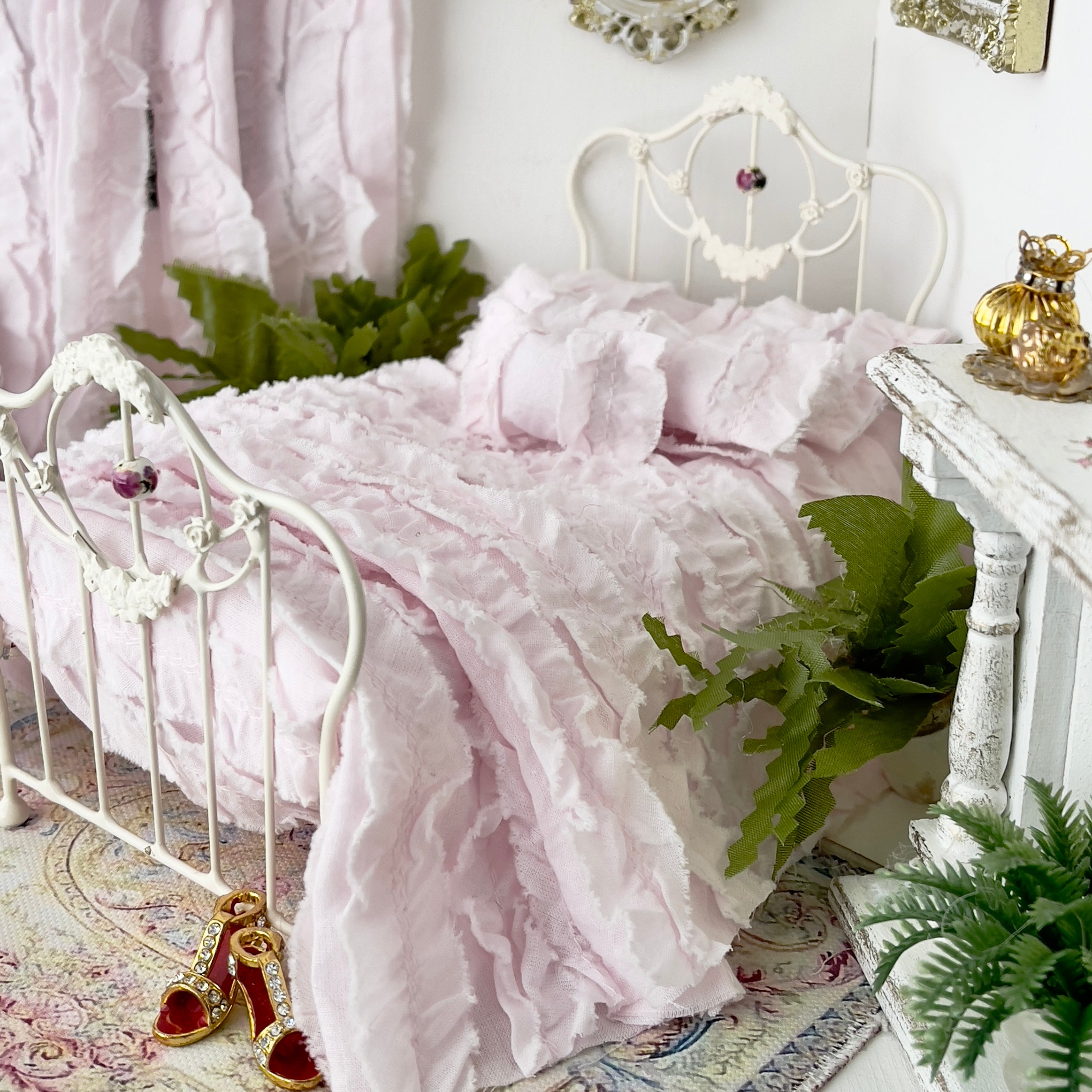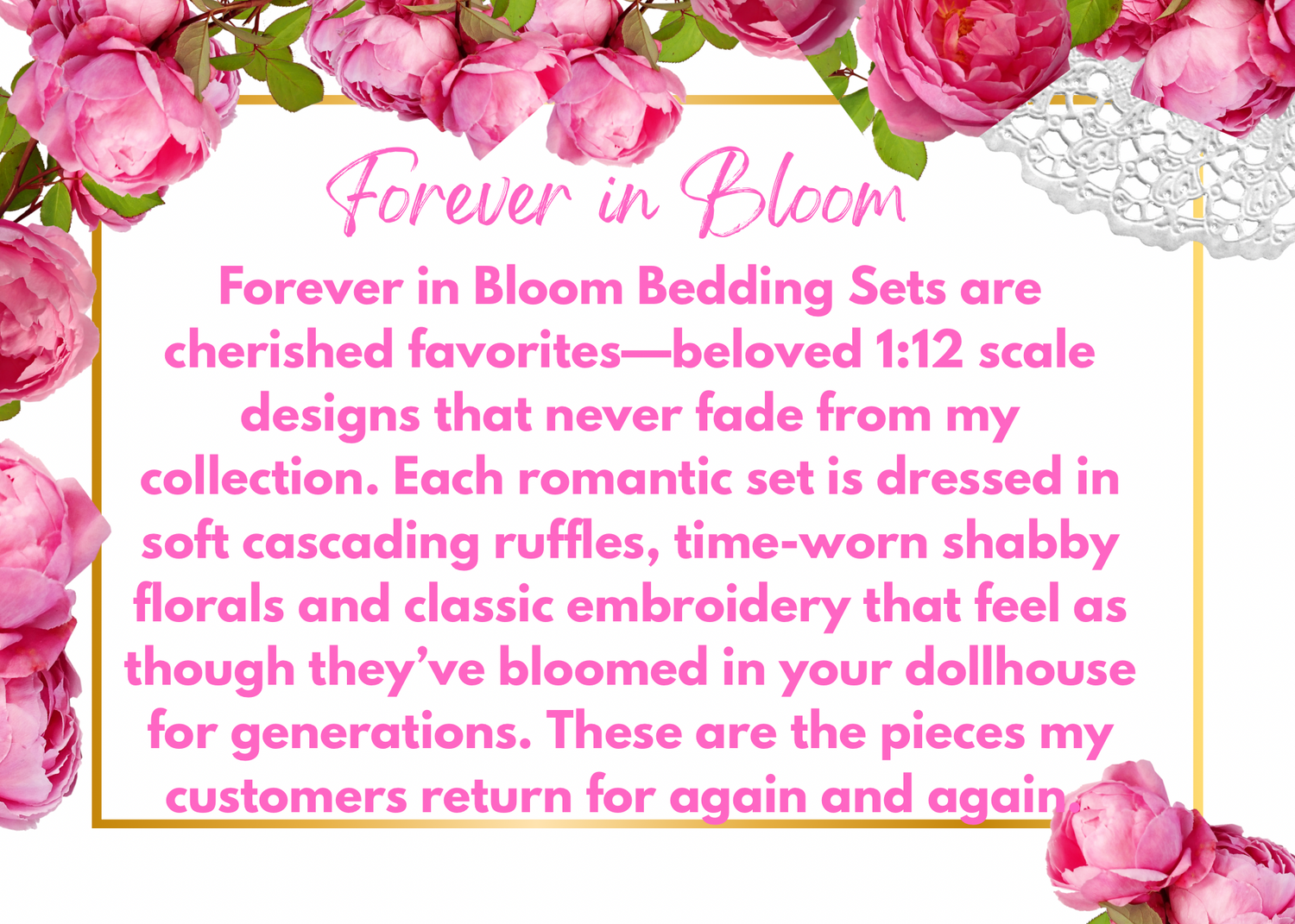 This month we are featuring At the Garden Gate…with shabby petite and clustered pink roses scattered among cascading, flowing ruffles and crisp cotton poplin. Each here for just a moment of time…time captured by a garden gate.