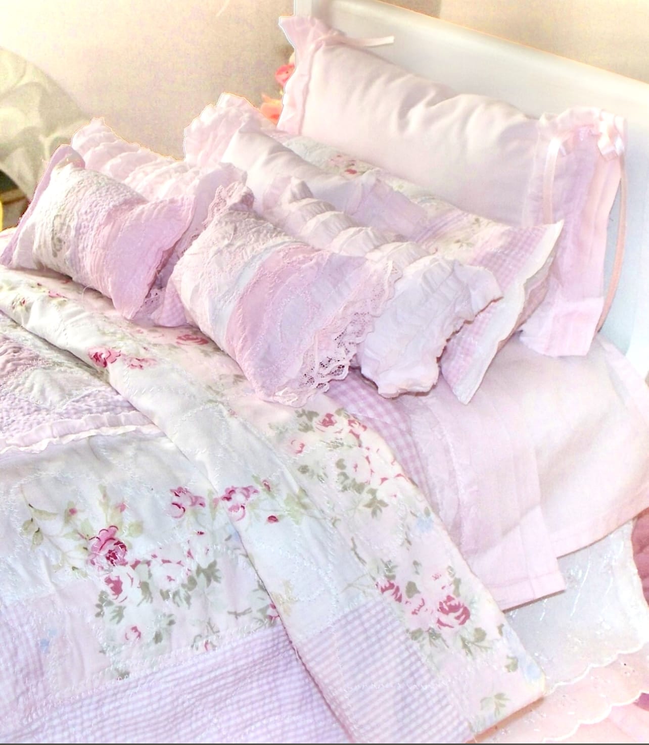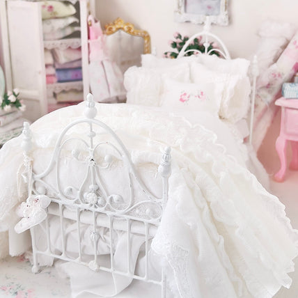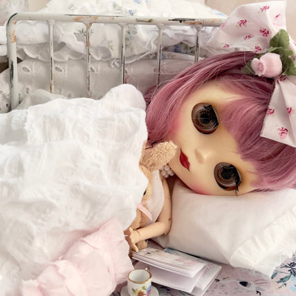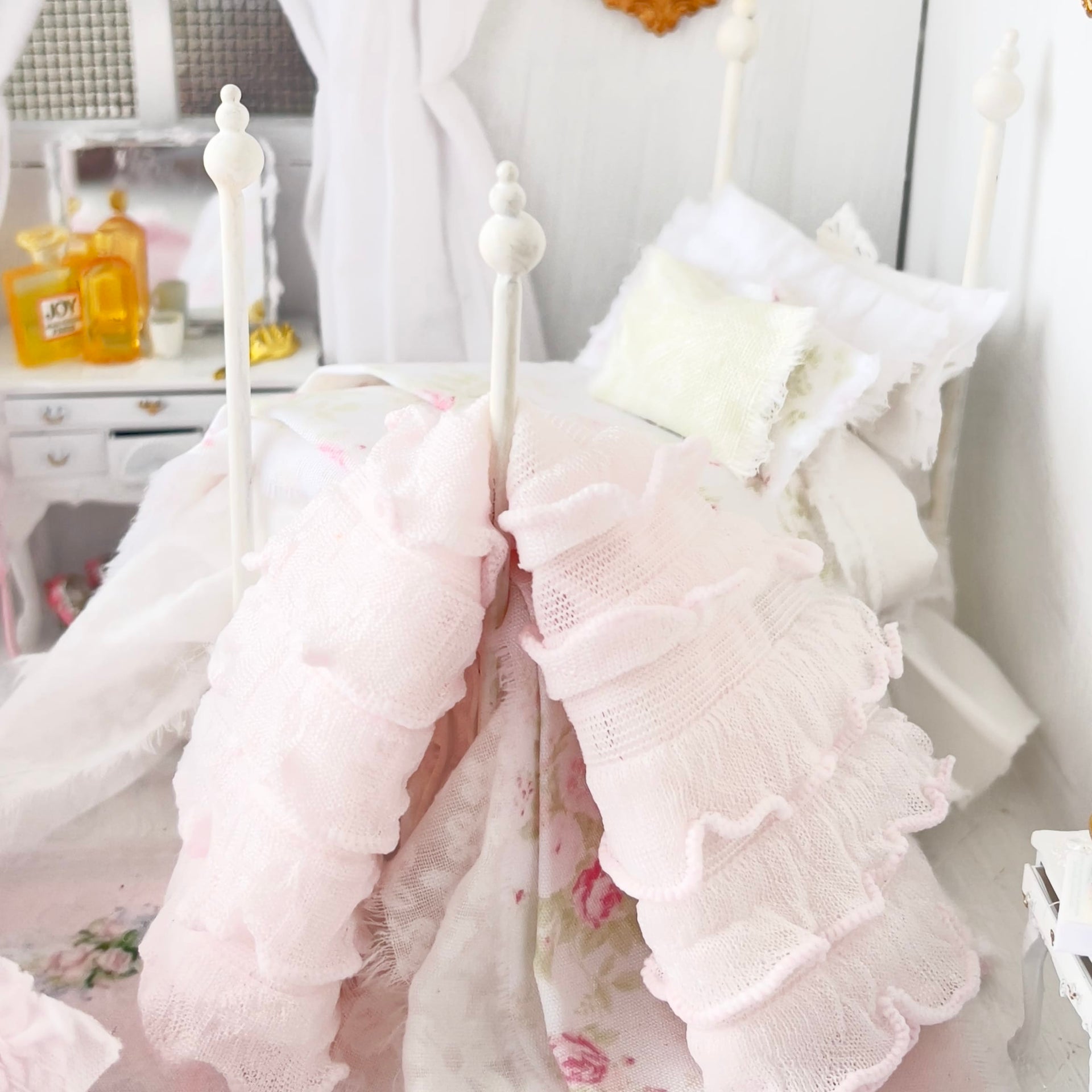 We sell handcrafted and bespoke shabby chic inspired doll and dollhouse dressed beds, bedding sets, painted furniture and romantic decor for your dollhouse, cottage, room box or dioramas.