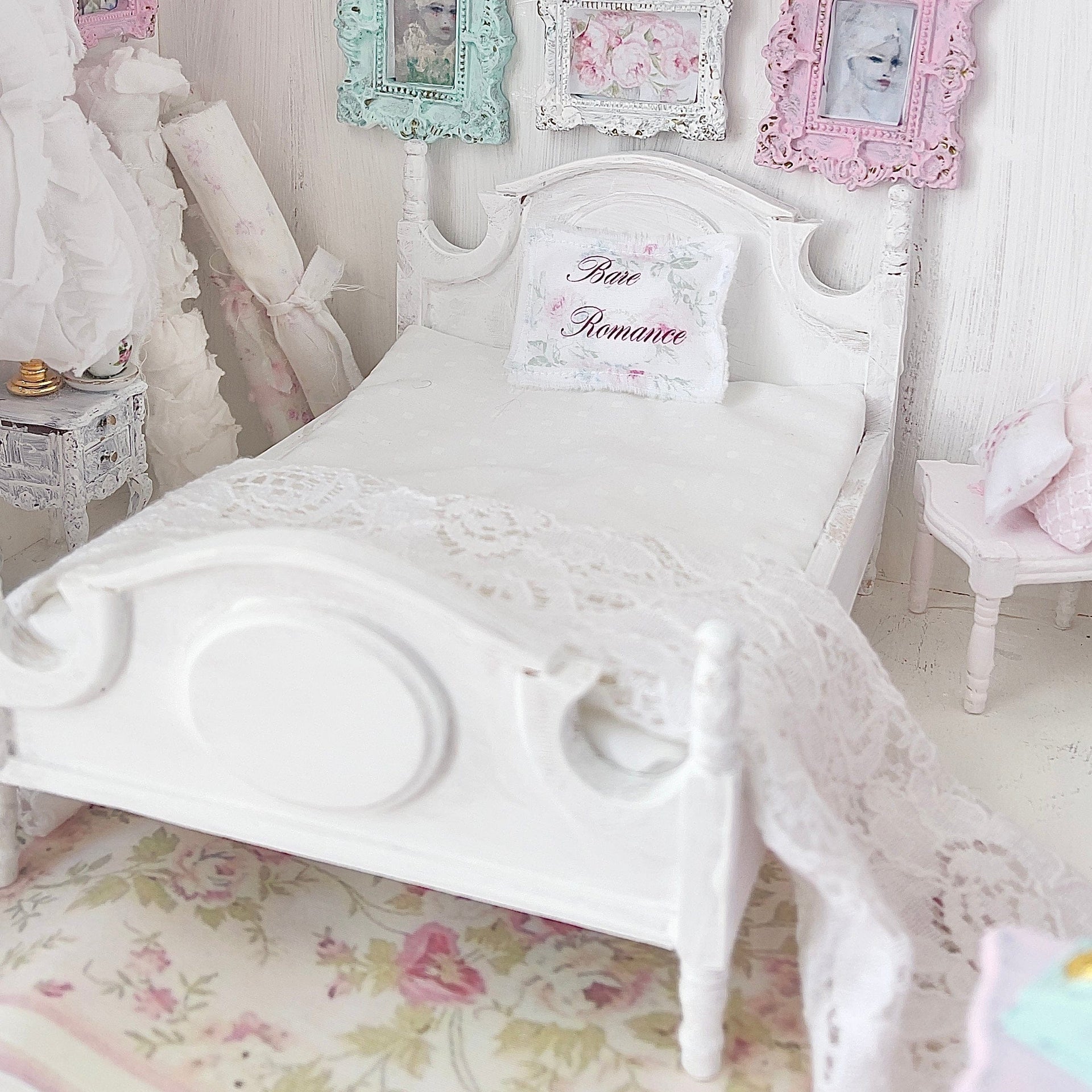 We sell handcrafted and bespoke shabby chic inspired 1:12 scale dollhouse dressed beds, bedding sets, painted furniture and romantic decor for your dollhouse, cottage, room box or dioramas.