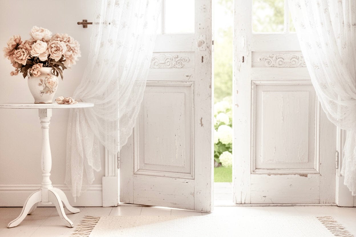 Cascading ruffled curtains… billowy cotton panels, and lace-edged trims move as if the window has just been opened…meant to soften rooms, frame views, and let the outside linger just a little longer inside.