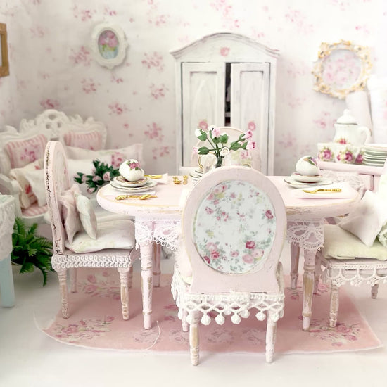 From the Seventh Petal - Painted Petals Collection, a 1:12 scale shabby distressed painted miniature sets that exudes a romantic well-worn charm and femininity. Each piece, perfectly imperfect and hand-finished with whispery brushstrokes.