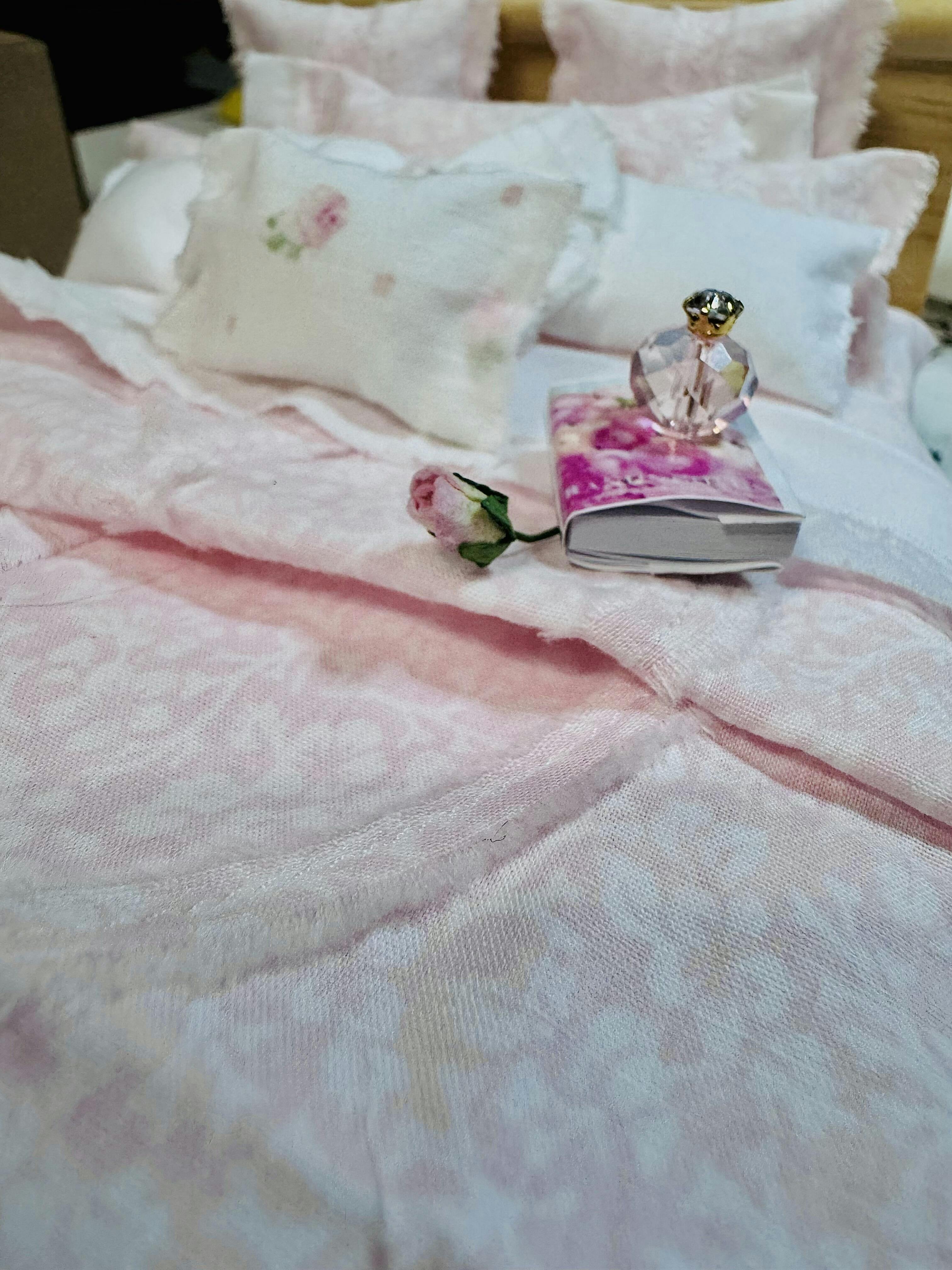 Lillian Grace Collection is a garden-inspired 1:12 scale dollhouse bedding that embodies soft femininity, English charm, and vintage floral romance from Chantallena Doll House.
